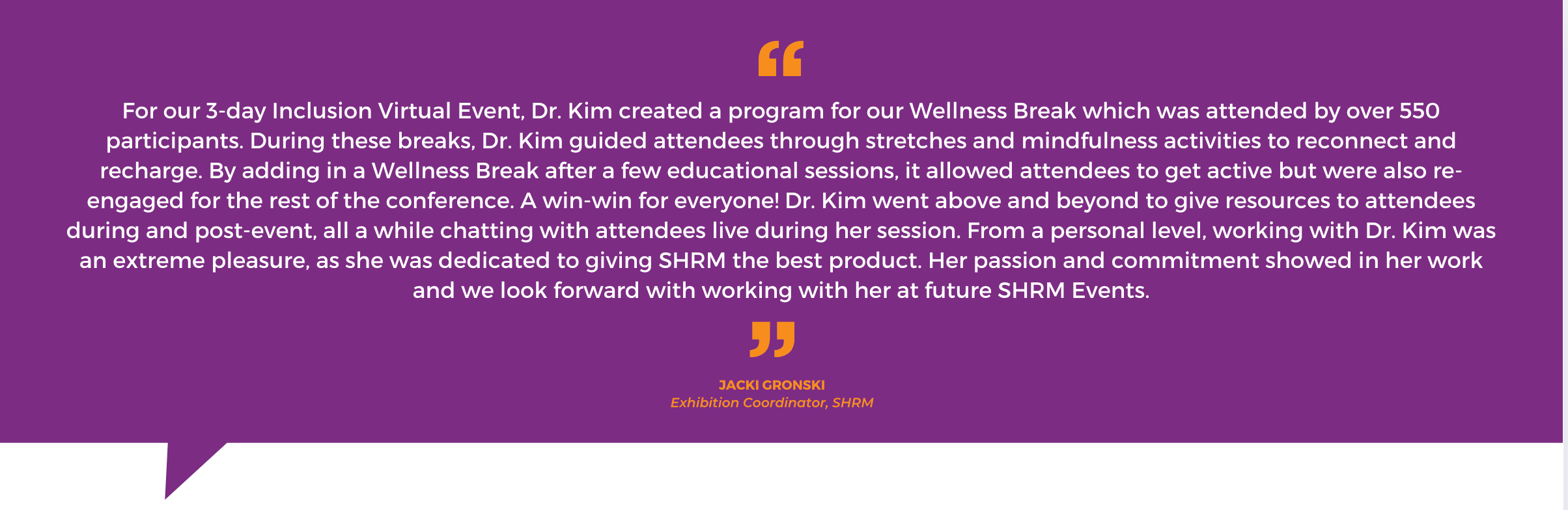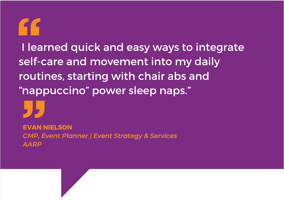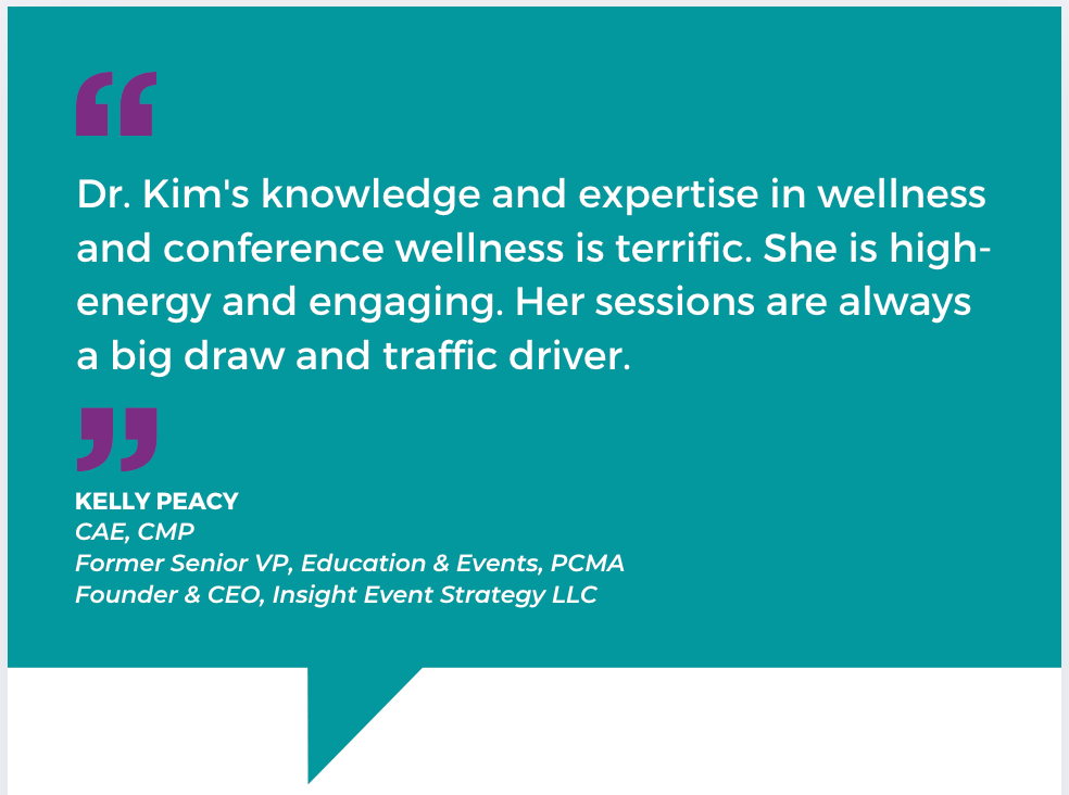 Featured Wellness Speaker at hospitality, meetings/events and association conferences.