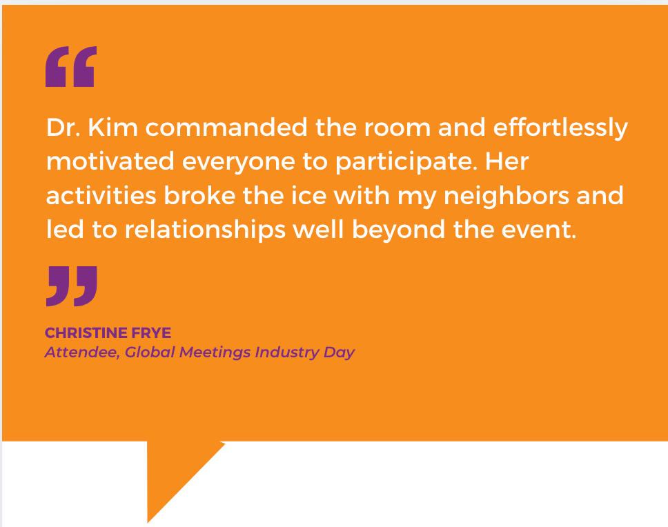 Engaging high-energy speaker known for innovative action-packed sessions that get audiences out of their seats and moving -- whether in-person or virtual. Participants put what they learn into practice, building muscle memory through experiential learning. They leave energized and equipped with simple, actionable tools they can start using right away.